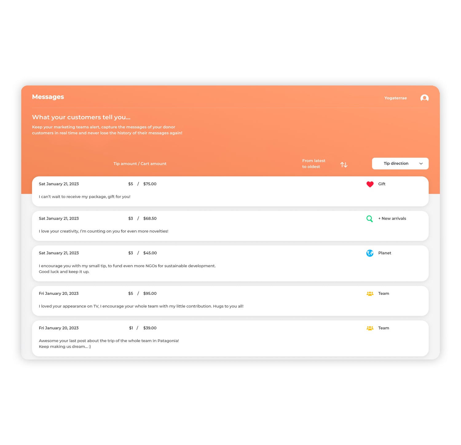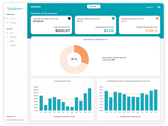 Real-time visualization of all tip data: how much, who, where... Uncover future needs of your community, ready to support your success.