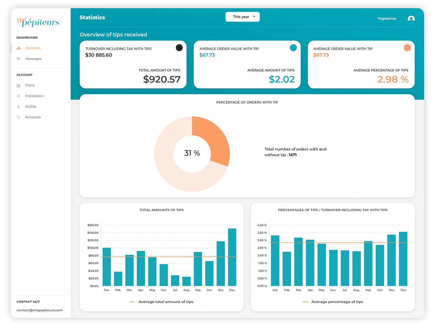 ● Observe your tip streams and discover the potential extra amount each customer can add to every order, gaining a deeper understanding of customer behavior on your store and the impact of your business actions.
